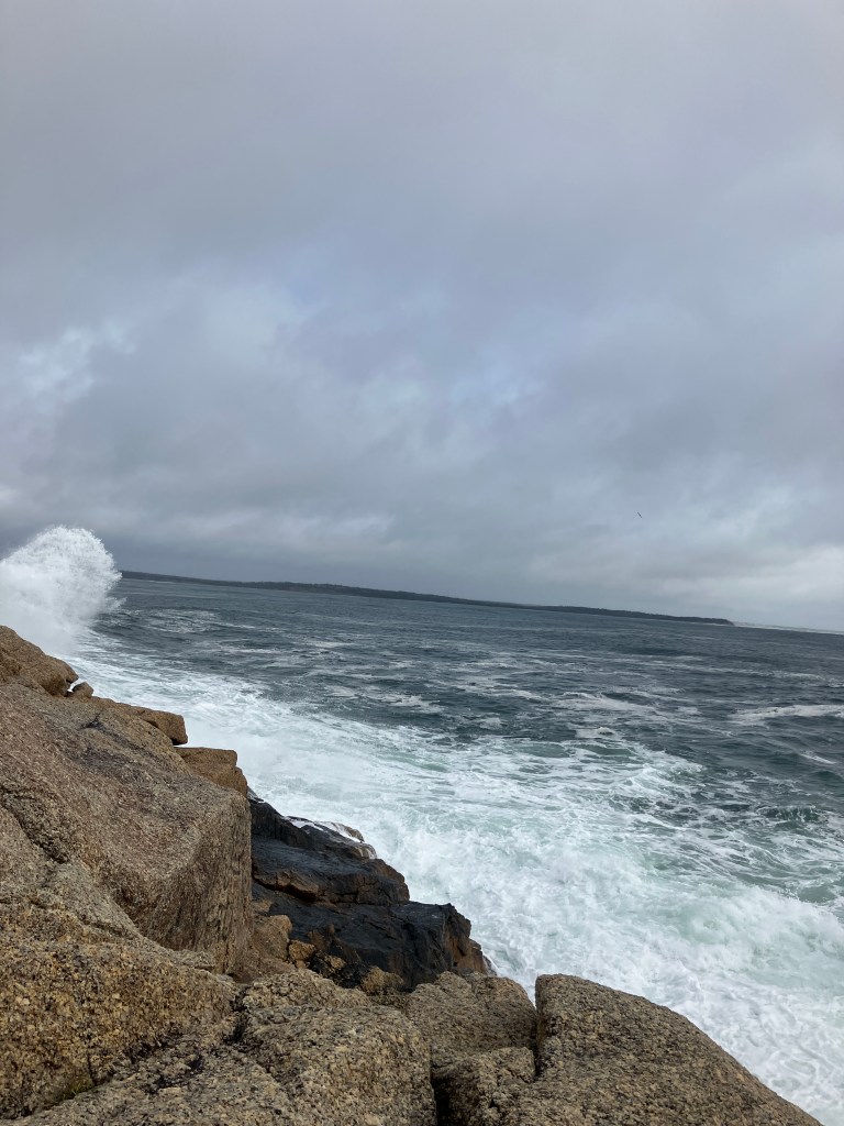 Waves were pummeling the shores below us and with each swell the water would rise in some spots upwards of 10 feet. We were sure to keep a healthy distance from where the water was climbing up the cliff by making note of where the rocks darkened in colour. The last thing that we would want to do here was slip down to the rocks and water below us. So, from a distance, I watched waves grow and dissipate against the shore thinking about what it would be like to be caught in a small boat in the middle of everything I was witnessing.