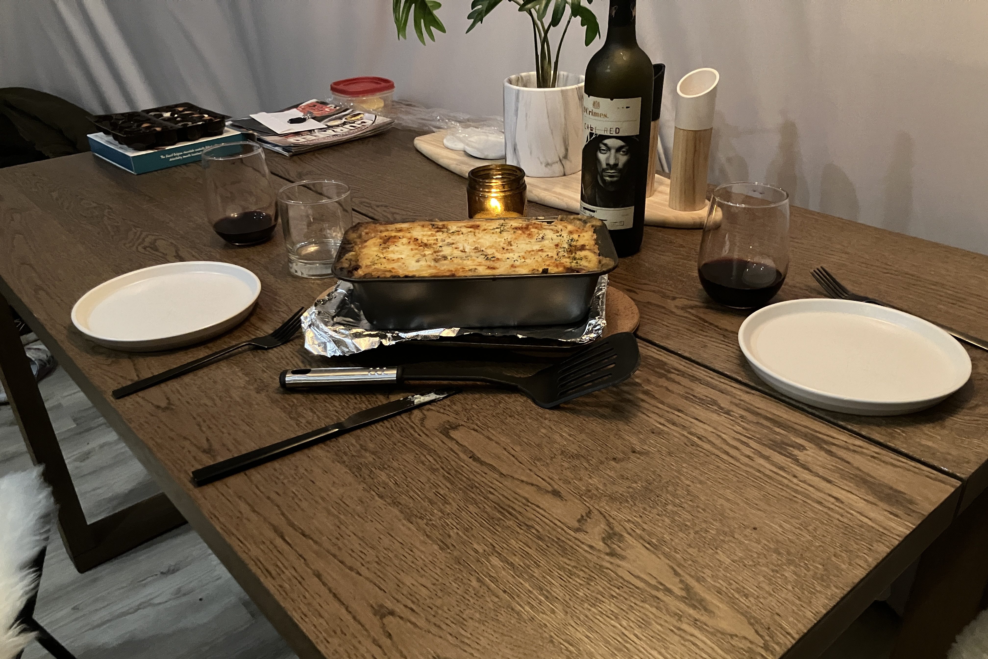 After we got our fill of the view and started feeling hungry, we headed inside to heat some supper. We pre-ordered our first meal from a local caterer that partners with the resort. They left a container of butternut squash soup in the fridge. I thought it was alright (not as good as my homemade version and a bit too peppery) but Justin was quite the fan!