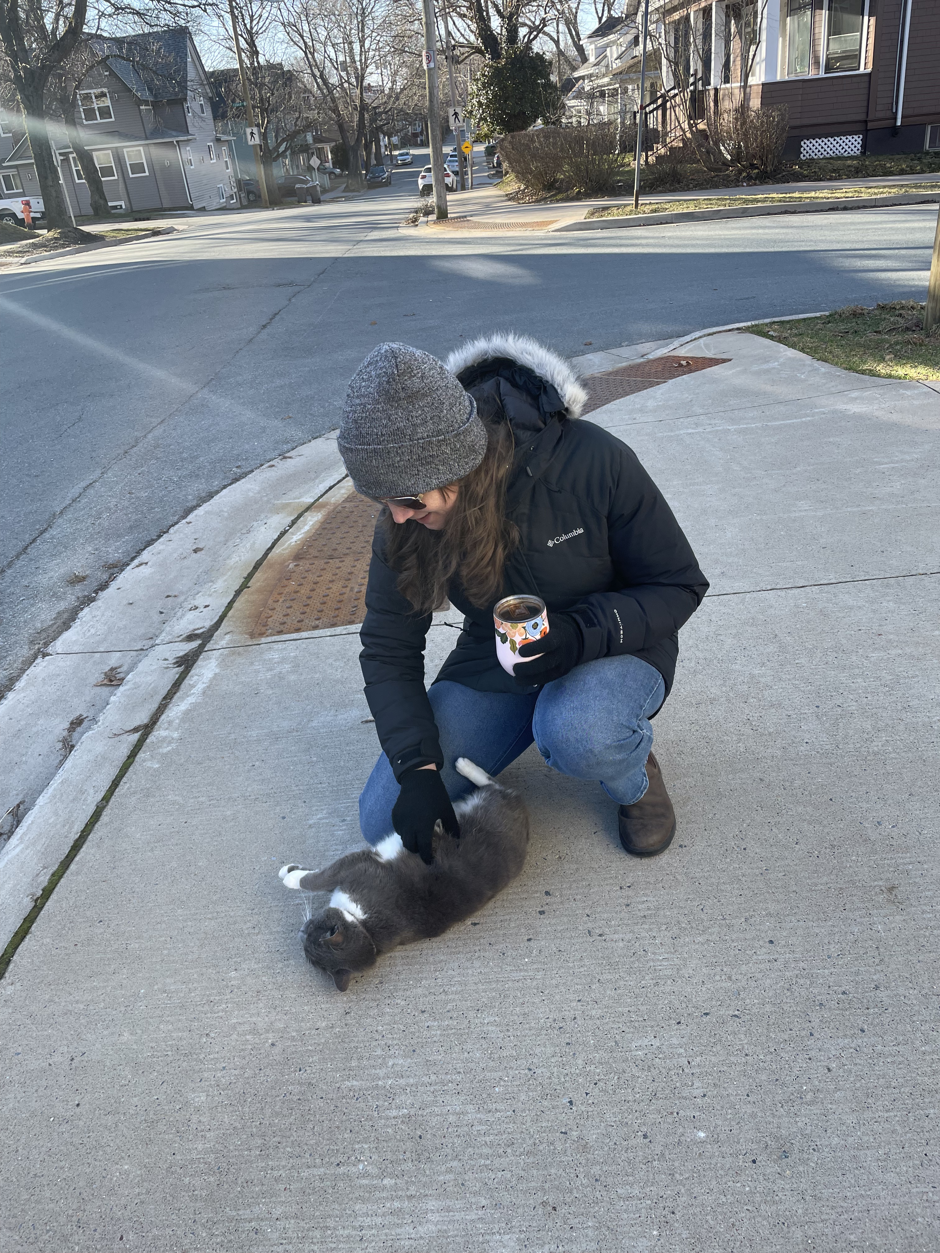 Sometimes, I like to get out for a quick walk around the neighborhood before starting the work day. It’s the same route, each time, and includes walking through the Dalhousie University campus, which we are fortunate to live only a block away from. It is a beautiful campus! If I’m lucky, I’ll get a visit from a friendly neighborhood cat, as well!
