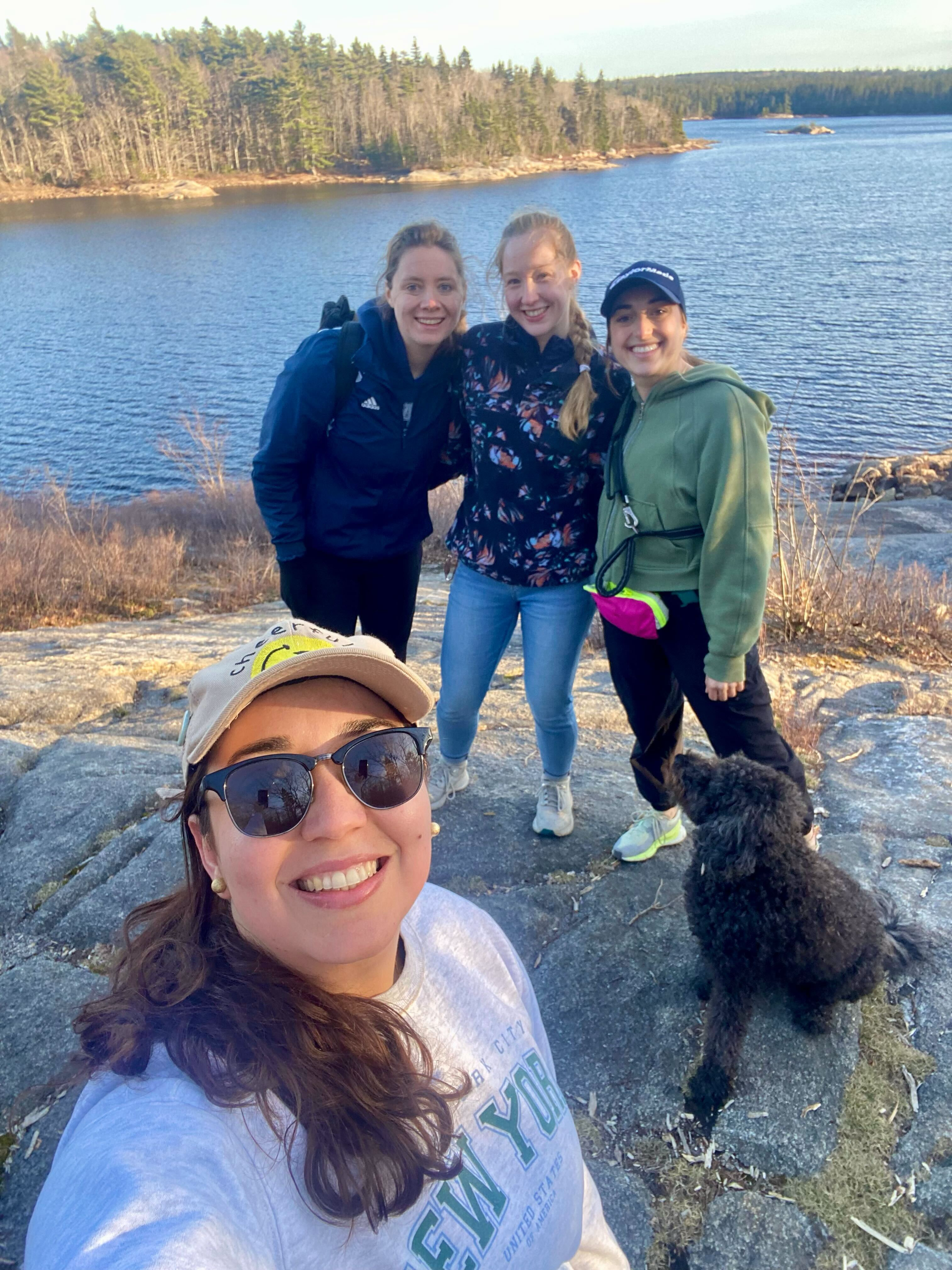 (Left) One of the bigger gatherings our church did called “Day Away” in Hubbards, NS. (Right) Amy with some new friends on a beautiful hike at Long Lake.